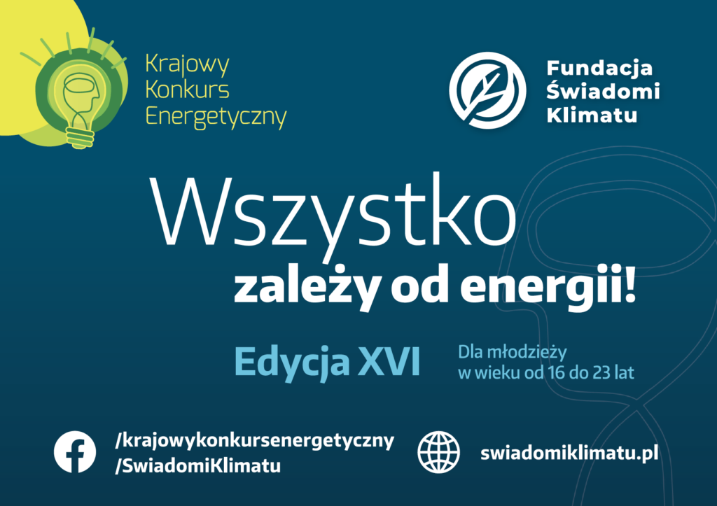 Z ogromną przyjemnością ogłaszamy XVI edycję Krajowego Konkursu Energetycznego. Tegoroczna edycja organizowana jest przez Fundację Świadomi Klimatu i Politechnikę Śląską. Inicjatywa wspiera budowę społeczeństwa świadomego energetycznie i ekologicznie, aktywizując uczniów i studentów do wykazania się wiedzą i kreatywnością w temacie szeroko pojętej energetyki.